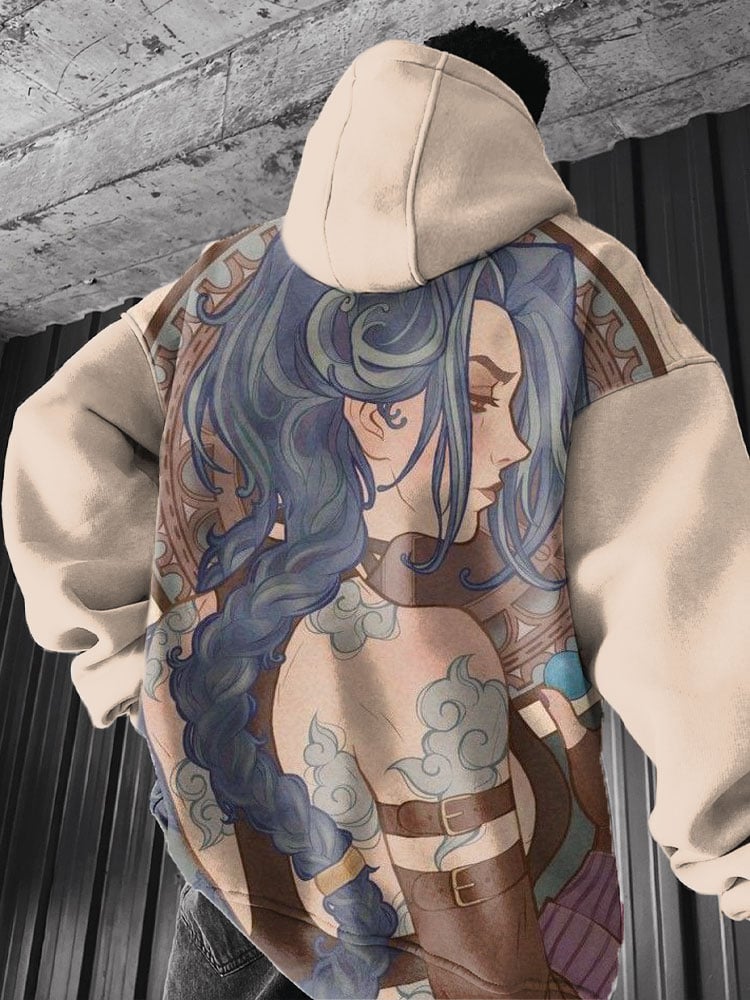 (Plus Velvet)Men's Anime Printed Hooded Sweatshirt