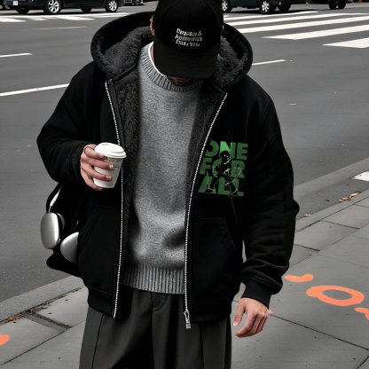 Unisex Graphic Streetwear Vintage Zipper Cardigan Plush Hoodie